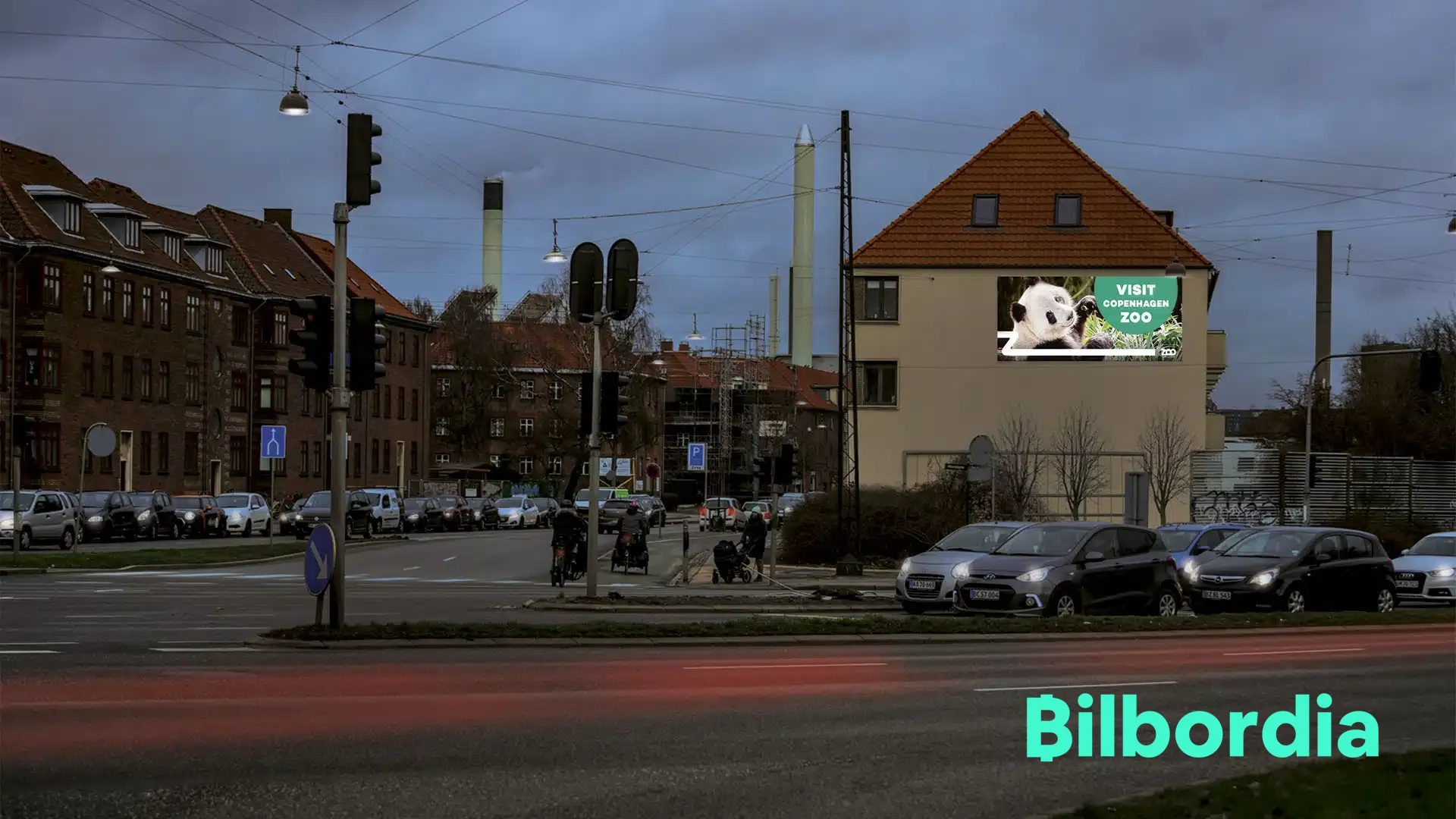 1 stor skærm på 18 kvm. placeret i knudepunktet hvor Bispeengbuen møder Hillerødgade og Borups Allé.